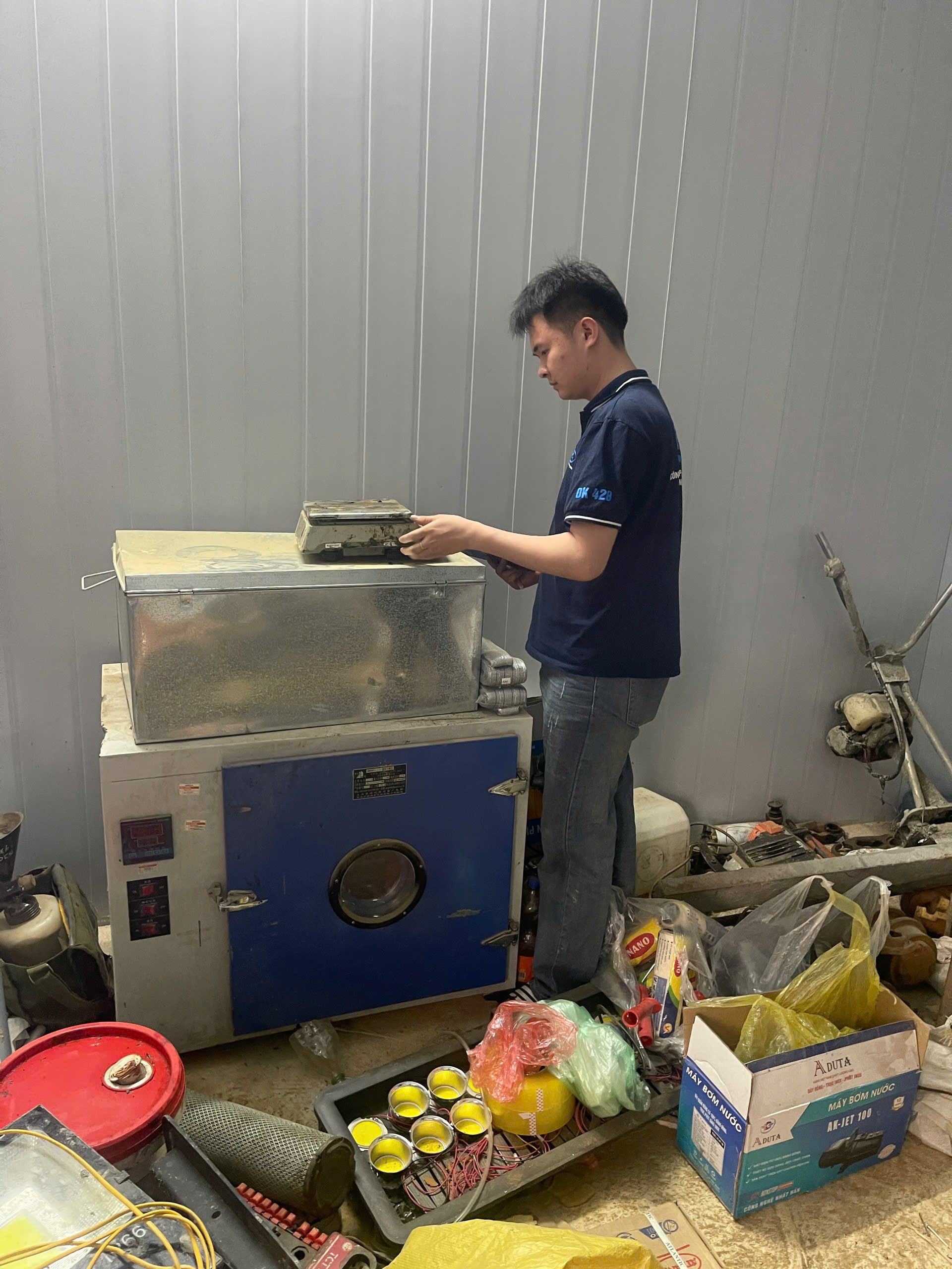 Bước 3: Vệ sinh và kiểm tra chi tiết: Làm sạch bề mặt, loại bỏ bụi bẩn/hóa chất, tra dầu mỡ quạt, kiểm tra dây đai, van an toàn.